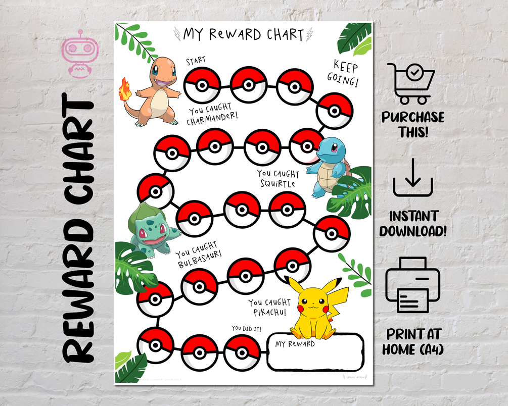 Pokemon Reward Chart for Kids, Chore Chart, Behaviour Chart, Digital Download